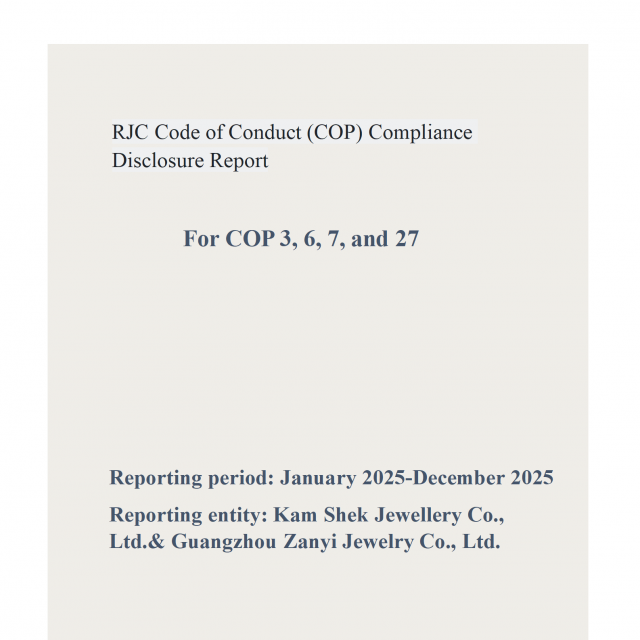[Kam Shek Jewellery Co., Ltd.& Guangzhou Zanyi Jewelry Co., Ltd.] joined the RJC in [2024] and has since obtained the [0000 5741][3 year] certification.